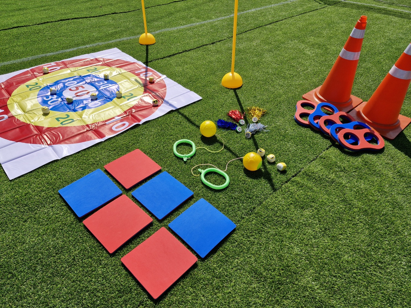 신발 던지기 게임, 판 뒤집기, 제기, 2인 3각 달리기, 발 줄넘기, 팀 티셔츠가 제공됩니다. (악천 후에는 사용이 불가합니다.ㅜㅜ)